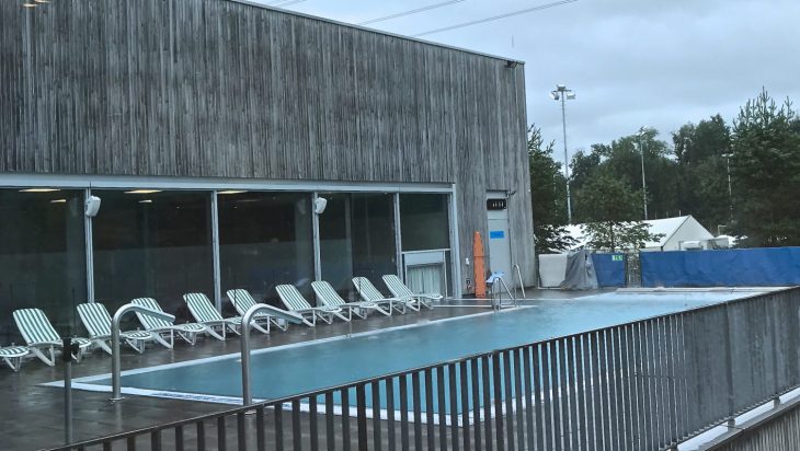 Aquafitness im Regen ist ein besonderes Trainingserlebnis. Dass Wasser nass ist, weiss jeder – das hat dieses Element eben an sich. Sich bei Regen auch von oben während des Trainings berieseln zu lassen, ist nicht alltäglich und einfach toll, wenn der Kurs im Freien stattfindet. Die natürliche Abkühlung von oben tat gut. Das 45-minütige Training hat es in sich – trainiert werden Ausdauer, Koordination, Beweglichkeit und Kraft. Aquafitness ist besonders gelenkschonend und für alle Altersgruppen geeignet. Meine Freundin Daniela und ich waren mit Abstand die Jüngsten, was wohl am Wochentag und der Uhrzeit liegen mag. Am Freitagvormittag um 10 Uhr gehen die meisten Berufstätigen in unserem Alter arbeiten, wenn man sich nicht gerade freinehmen kann. Ich ziehe den Hut vor allen Teilnehmern im älteren Semester, die diesen Kurs regelmässig besuchen und das Training voll durchziehen – Chapeau! Wir waren ganz schön geschafft, aber glücklich.