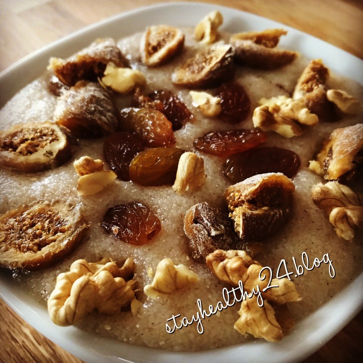 In der kalten Jahreszeit, bevorzuge ich warmes Essen, gerne auch dreimal am Tag. Ein frisch zubereiteter Dinkelgriessbrei wärmt und spendet mir die nötige Energie für den Morgen. Da ich Milch eher schlecht vertrage – bei mir ist es kein Trend, sondern schon von Kindheit an – bereite ich den Dinkelgriessbrei meist mit Wasser zu, wenn ich nicht gerade ein Kuhmilchersatzprodukt vorrätig habe.