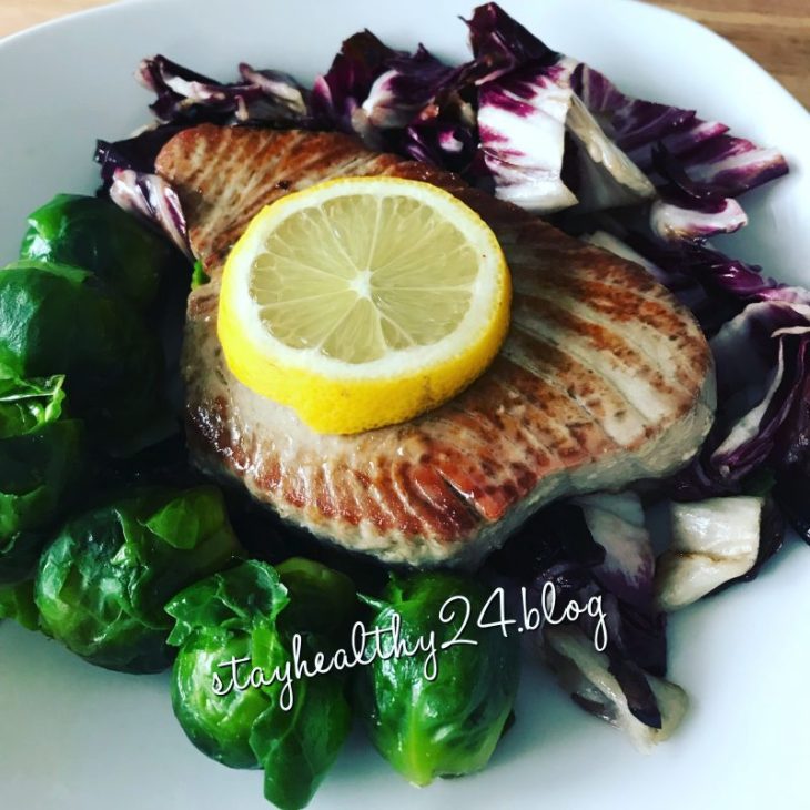 Die Küche ist mein Revier – Kochen meine Leidenschaft. Doch im Alltag muss es manchmal eben auch zügig gehen. Ein aufwändiges Dreigänge-Menü liegt unter der Woche einfach nicht drin. Trotzdem achte ich auf eine ausgewogene Mahlzeit. Ein schnell zubereitetes Essen ist auch als gesund Variante möglich. Ein Thunfischsteak mit einer Zitrone auf einem warmen Radicchiosalat und etwas Rosenkohl ist in weniger als 20 Minuten zubereitet. Was kocht ihr, wenn es schnell gehen muss?